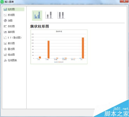 3、会出现以下对话框,然后点击柱状图或者折线图,或者你想要的一种图表格式,(本例中以柱状图为例)
