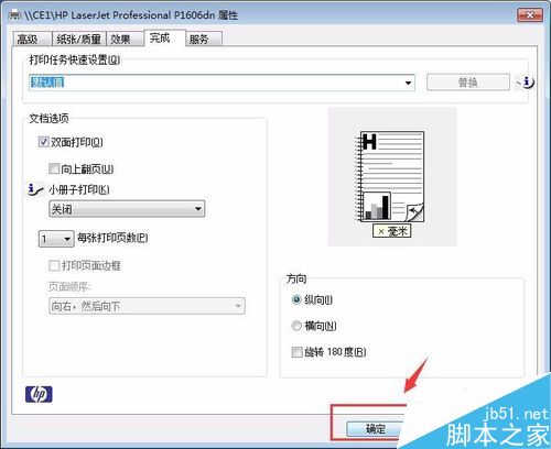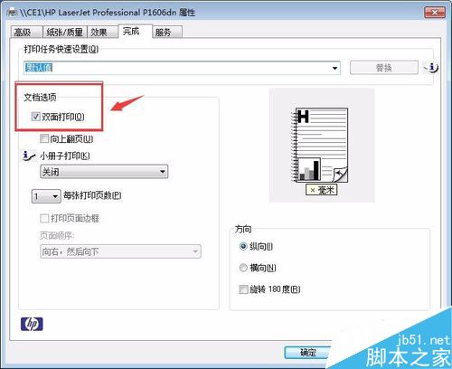6、选择“完成”并勾选“双面打印”,单击“确定”