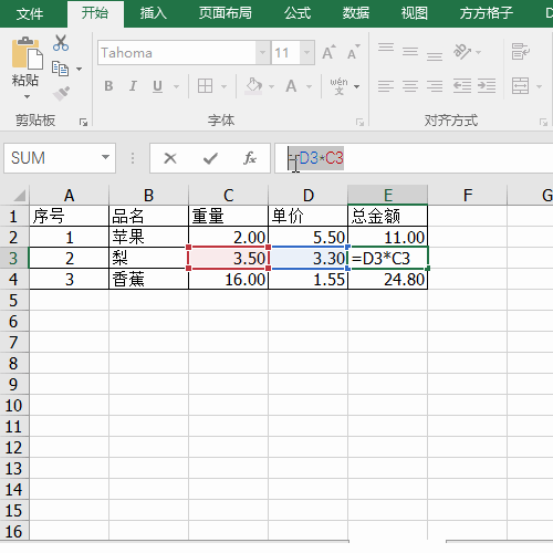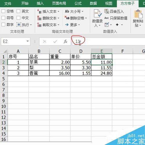 1、首先打开数据区域,看到总金额是由公式计算得来,如下图所示: