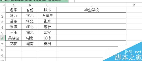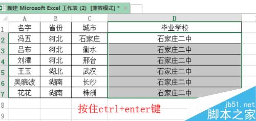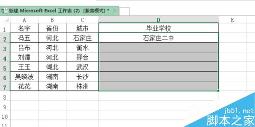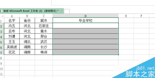 2、在毕业学院中把下方单元格全部选中。