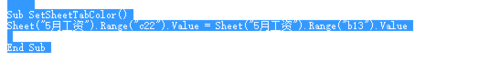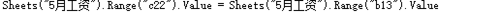 Sheet("5月工资").Range("c22").Value = Sheet("5月工资").Range("b13").Value