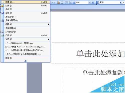 1、首先启动powerpoint2003,执行文件-新建命令,新建一个空白文档。