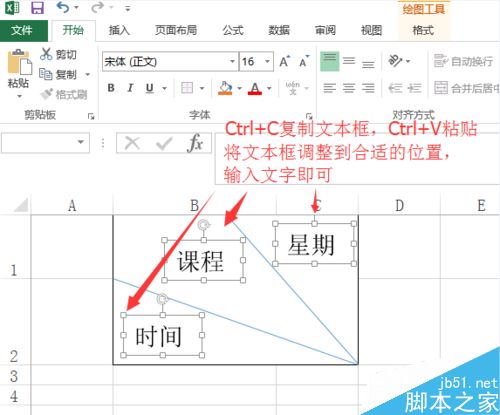 5、复制、粘贴文本框:选定文本框,按键Ctrl+C复制,Ctrl+V粘贴。将文本框调整到合适位置,输入文字。