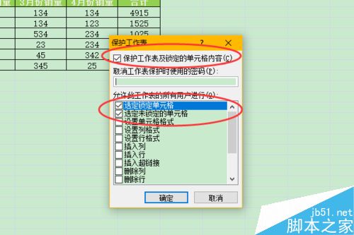 5、单击保护工作表按钮,弹出保护工作表对话框,勾选上保护工作表及锁定单元格内容。这些都是默认设置,直接确定即可。