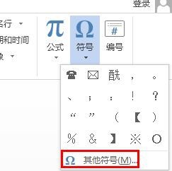 2、切换到“插入”选项卡, 单击“符号”组中的“符号”按钮,在弹出的下拉列表中选择“其他符号”选项。