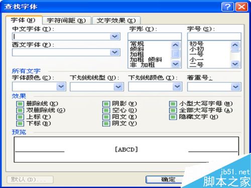 3、将光标置于查找内容输入框中,点击格式,从菜单中选择字体在弹出对话框中不做任何设置直接点击确定。