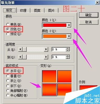 转到“填充效果”操作框,如图二十所示的一 一设置好;