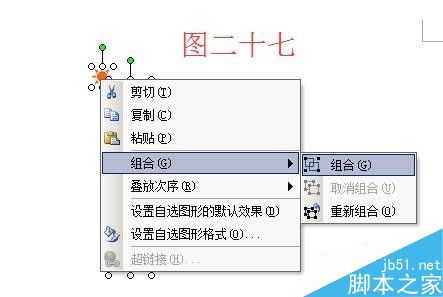 鼠标右键在图形上点下,弹出的菜单中点“组合”;