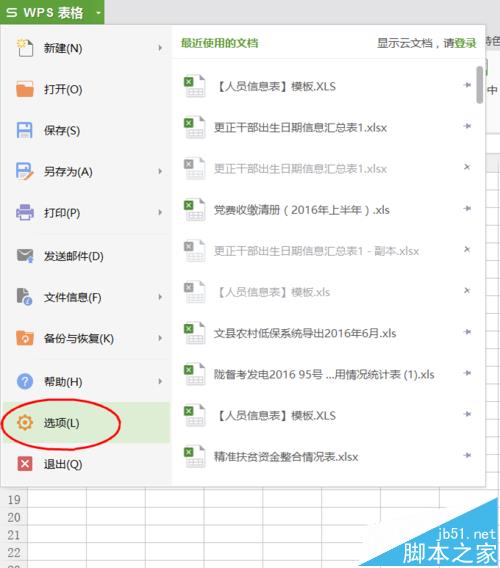 2、在点击【WPS表格】选项框后弹出的菜单下,点击选择【选项】。(如图所示)