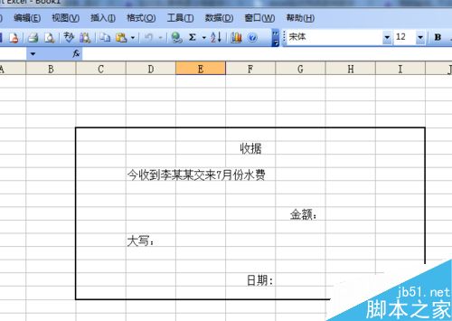 1、首先制作你要打印的收据票据的模板,调整好你要打印的效果后,在这里就简单制作一个,仅供参考。如图
