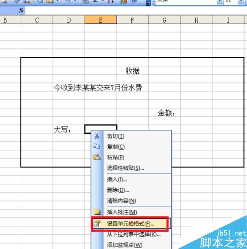 2、选中需要大写的单元格,然后右键单击选中“设置单元格格式”选项,也可以在菜单上面点击“格式”---“单元格”
