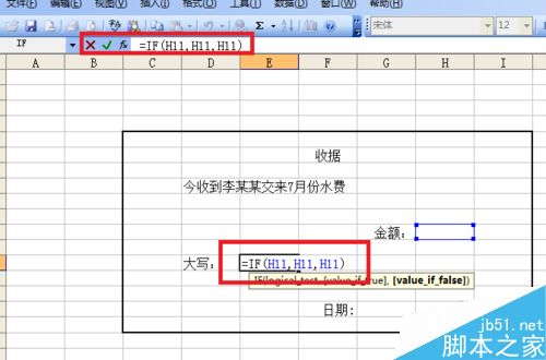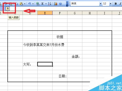 6、确定后,你会看到大写单元格的函数,请核对一下,如图