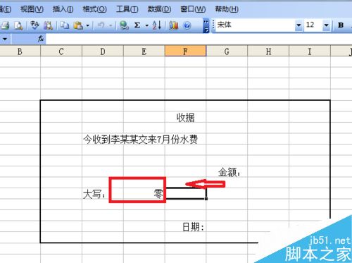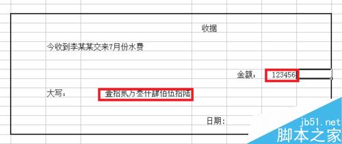 7、好了,看一下效果如何,我们在小写金额处写上数字,大写也会跟着自动生成了啦,很简单吧,如图效果。