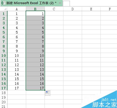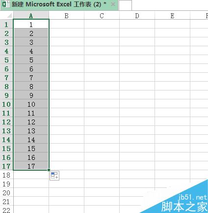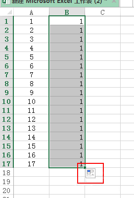3、按住ctrl键后向下拖拽,所有数字依次增大一个。