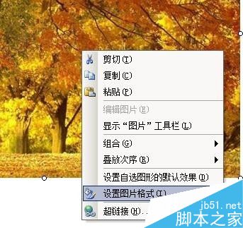 鼠标右键点下图片,弹出的菜单中点“设置图片格式”;