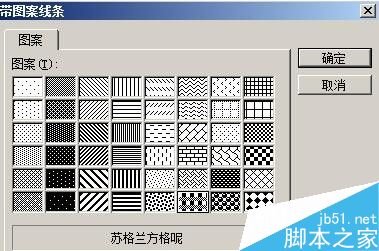 弹出“带图案线条”设置框,在框内的图案选项这里,选择自己想要的图案。