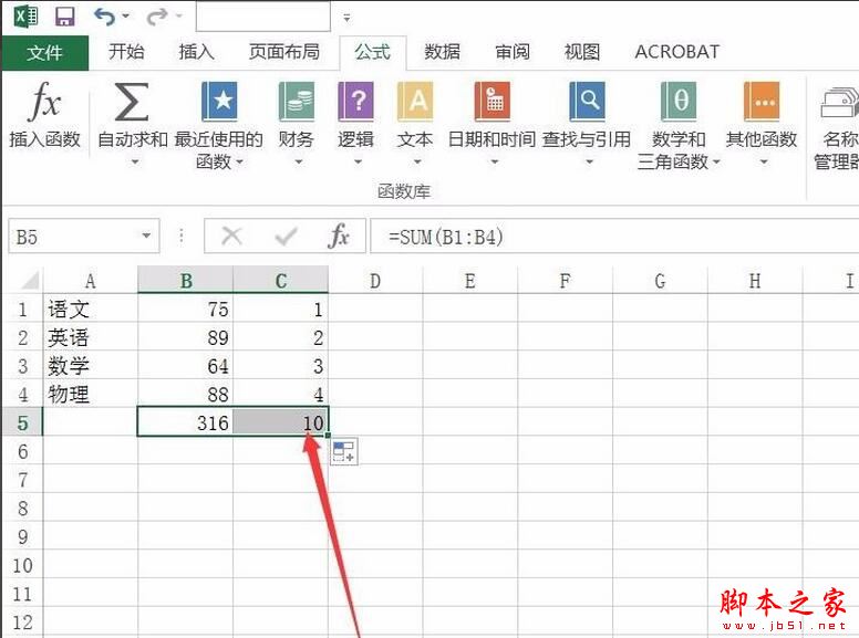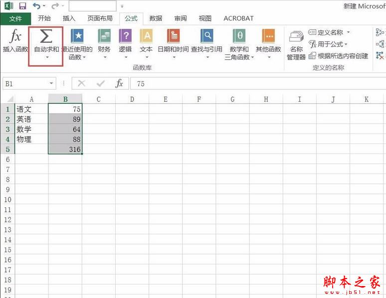 把求和的数据选中,点击公式选项下的自动求和。