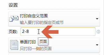 4、如果想打印连续的一部分页数,则在两个页数之间加个横线 - ,例如要打印第2至8页,就输入2-8。