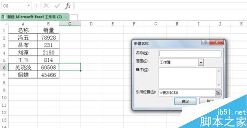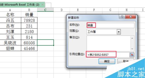 3、设置引用位置和名称,确定。
