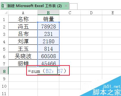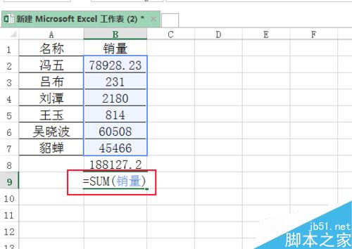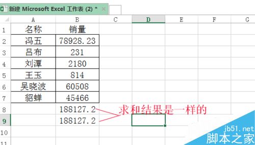 5、直接用=sum(销量)也求出结果。