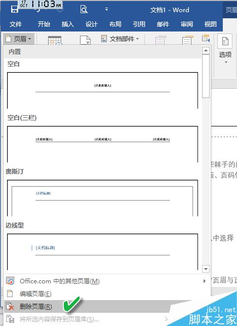 若使用的是Word 2016,页眉出现横线,可双击页眉处并选择“页眉→删除页眉”,页眉连同横线会一起去掉,横线去除后,再添加新的页眉内容即可。