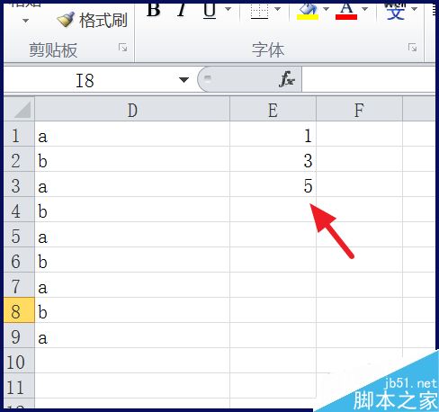 2、接着在后面一列输入1,3,5