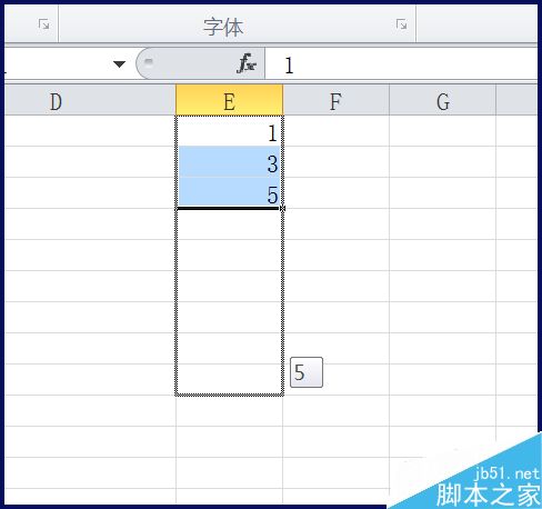 3、选中1,3,5,将鼠标放在右下角,当变成【+】时按住左键拖动