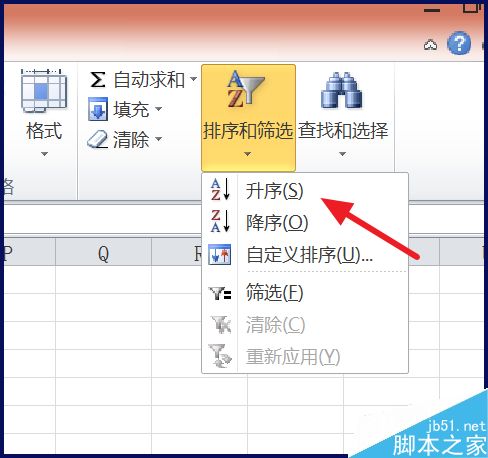 6、接着选择18行,点击【排序和筛选】-【升序】