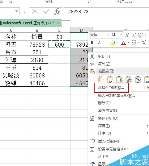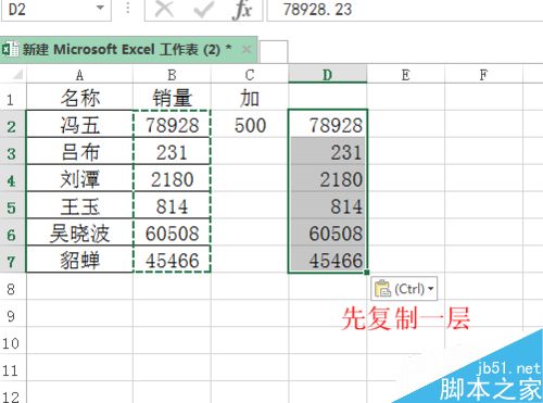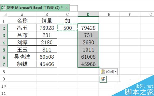 1、首先在excel表格中,例如销量统一加上500。