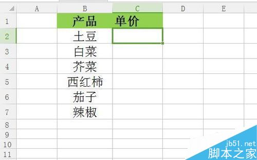 1、打开要编辑的excel工作表,图中表格作为例子,我们要在单价列中输入价格,这一列只能填入数字。