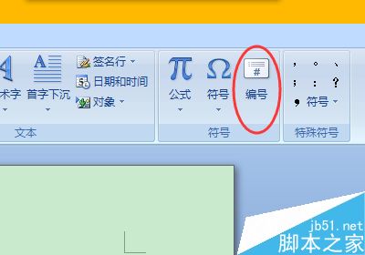 2、选中数字,在插入选项卡最右侧,单击符号组中的编号按钮