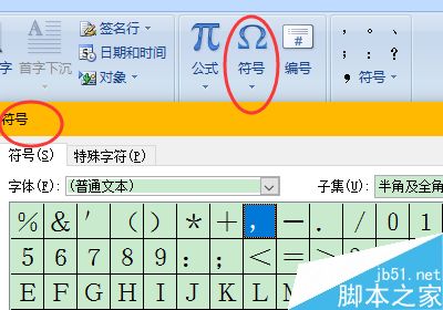 6、我们可以看到符号组中还有两个按钮,一个是公式一个是符号,符号很简单,一些比较复杂的符号不能直接用键盘输入,可以在这里找到。