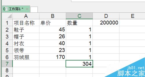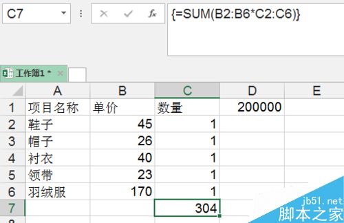 3、然后也将这些基本的买1件情况下的和算出来。(告诉小技巧可以使用数组求和。)