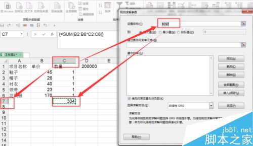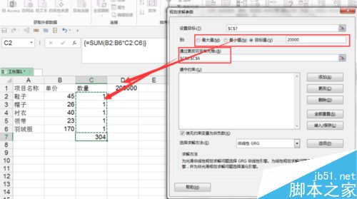 5、对应好单元格高,填写目标值的单元格。其次同样设置最大值,在这个问题中我们的值就是20万。其次还有一些基本的需要调整的单元格内容的选取。