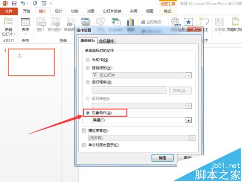 5、打开操作设置对话框之后,选择“单击鼠标”选项卡中的“对象动作”选项。