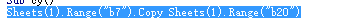 6、当然使用粘贴方法,非常的精确,但是也造成了部分使用上的不便,因为粘贴方法需要多种参数。如果只是复制值,那么我们可以直接使用一个简单的方法,直接将目标单元格或区域作为copy的参数输入。例如Sheets(1).Range("b7").Copy Sheets(1).Range("b20")