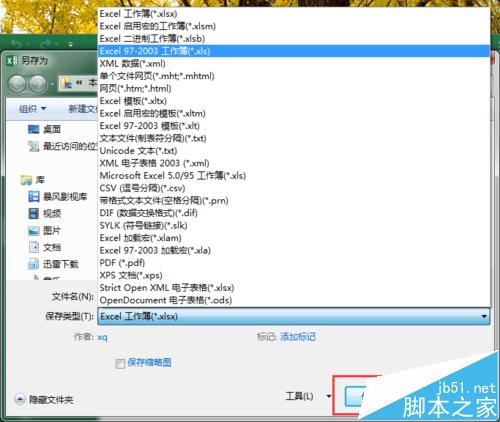 15、选择经常用的类型,如excle97-2003工作簿(*.xls)点击“确定”