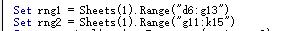 4、先定义一下三个变量为区域变量,然后将选择的两个区域分别赋值给rng1,rng2.这里使用intersect方法来求取两个范围的交叉区域。