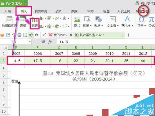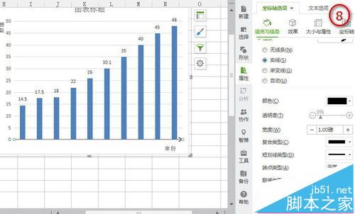 3、点击图表→调出右上侧出现设置框