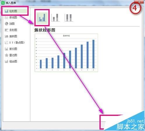 2、选中数据→插入→图表→柱形图→选择自己需要的形状→确定