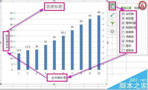 4、点击最上方图表元素设置窗口→按照如图勾选→把横坐标改为“年份”→纵坐标改为“数字”→图表标题改为自己想要的