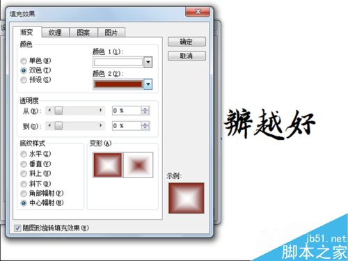 3、选择椭圆工具,按住shift键绘制一个正圆,双击该圆,弹出设置自选图形格式对话框,设置填充颜色为外红内容的的双色渐变,线条颜色为无,点击确定。