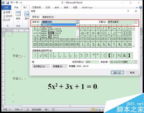 2、在弹出符号框中,选择“普通文本”和“数学运算符”,如图所示。