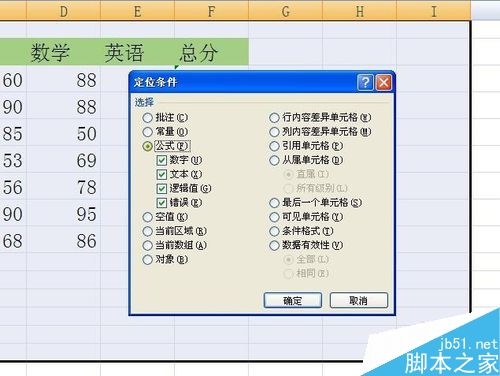 4、进入定位条件设置,点击【公式】选项,灰色部分变亮,点击确定。