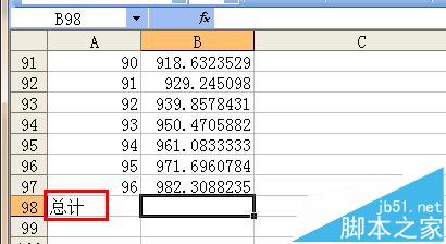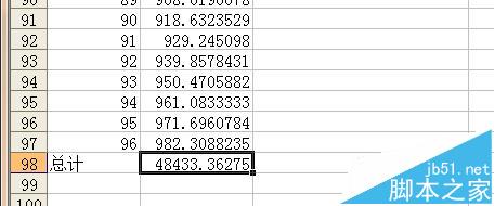 1、在数据的最下面我们把数据汇总一下,在A98单元格输入总计