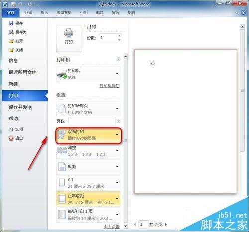 Word2016设置双面打印后只想打印在纸张正面怎么办?