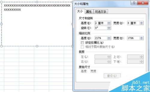 6、选择“文本框”,点鼠标右键选“大小和属性”,跳出对话框,更改主“高度”或“宽度”或拖动“文本框”的对角,也可得出我们想要的效果