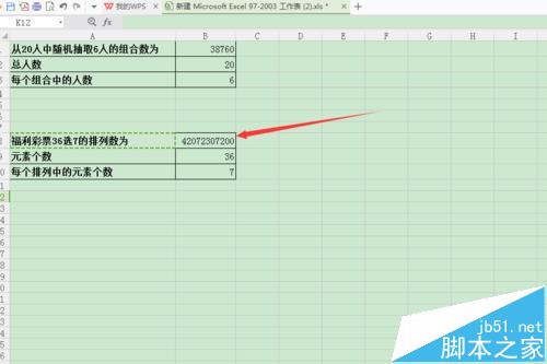 6、在输入公式完毕后,按回车键,计算出“福利彩票36选7的排列数”,如图所示;