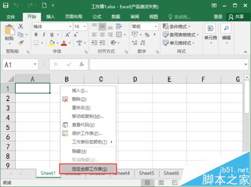 4、全选,箭头放在工作表处,点右键,点击’选定全部工作表‘,如图所示