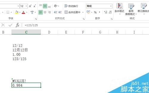 5、不过在常规格式下输入的非正常日期的内容的数值,一样能表现为分数形式,不过等同于文本格式,但是不会修改单元格的格式,也不能用于计算。如图所示:
